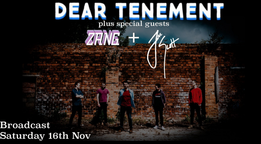 Dear Tenement EP Launch November 16th, 2019 Debut EP launch for Glasgow Indie band Dear Tenement plus special guests ZANG and Zac Scott Music