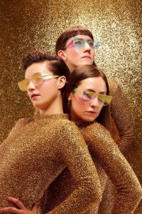 bass guitar, Luciana Mercer’s drum kit, Rebecca Hawley’s synths, and the trio’s swooning steely vocal harmonies.